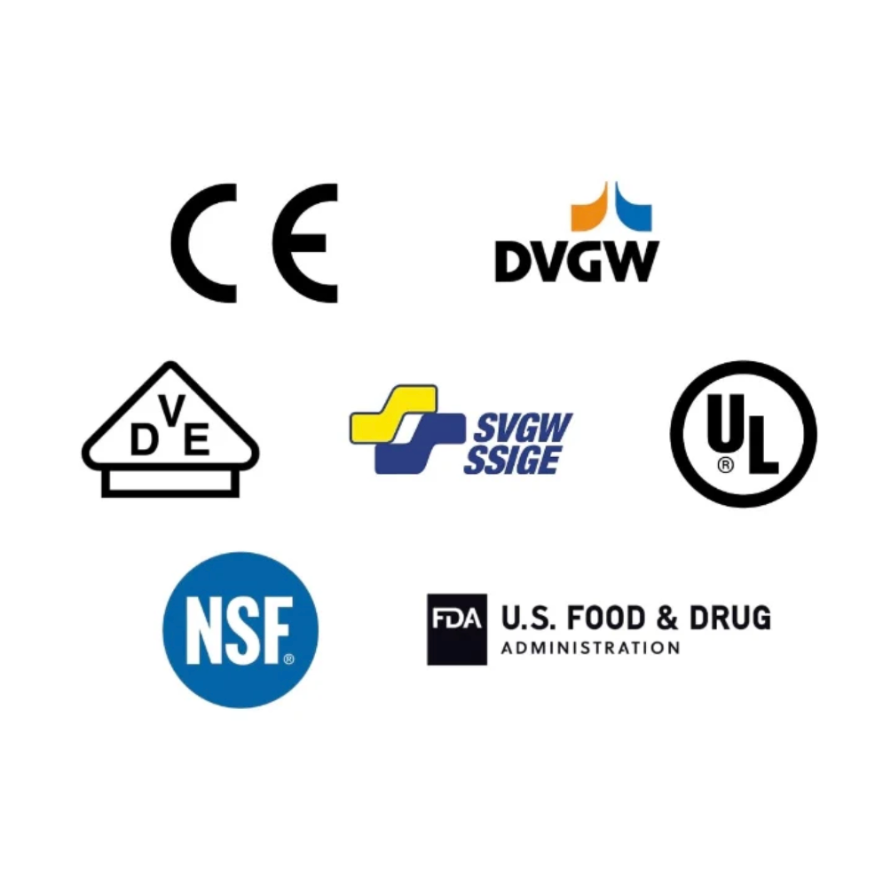 Be it the German Technical and Scientific Association for Gas and Water (DVGW) or the US Food & Drug Administration (FDA) - we are committed to meeting all standards.